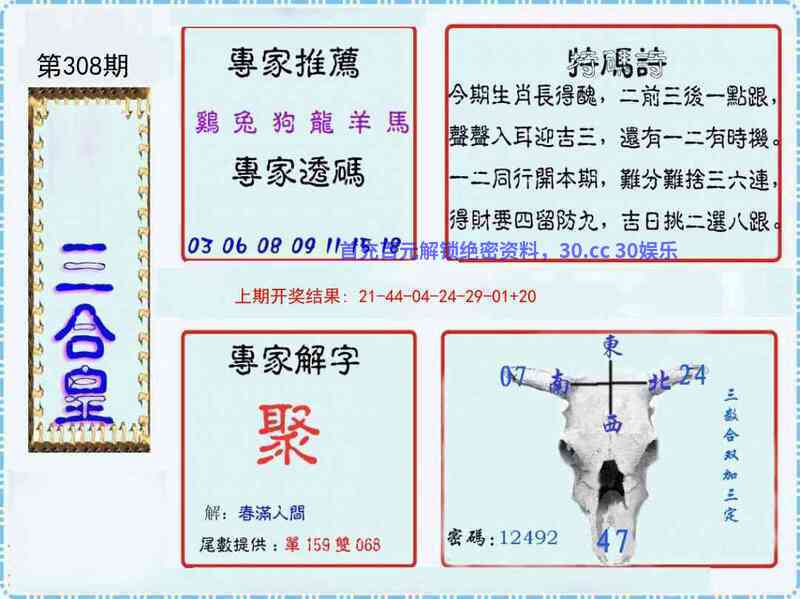 308期特码诗:今期生肖長得醜,二前三後一點跟,聲聲入耳迎吉三,還有一二有時機。一二同行開本期,難分難捨三六連,得財要四留防九,吉日挑二選八跟。